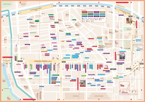 You can download a PDF file of "JIMBOCHO BOOK TOWN MAP", the official guide map of Kanda Old Bookstore Federation.